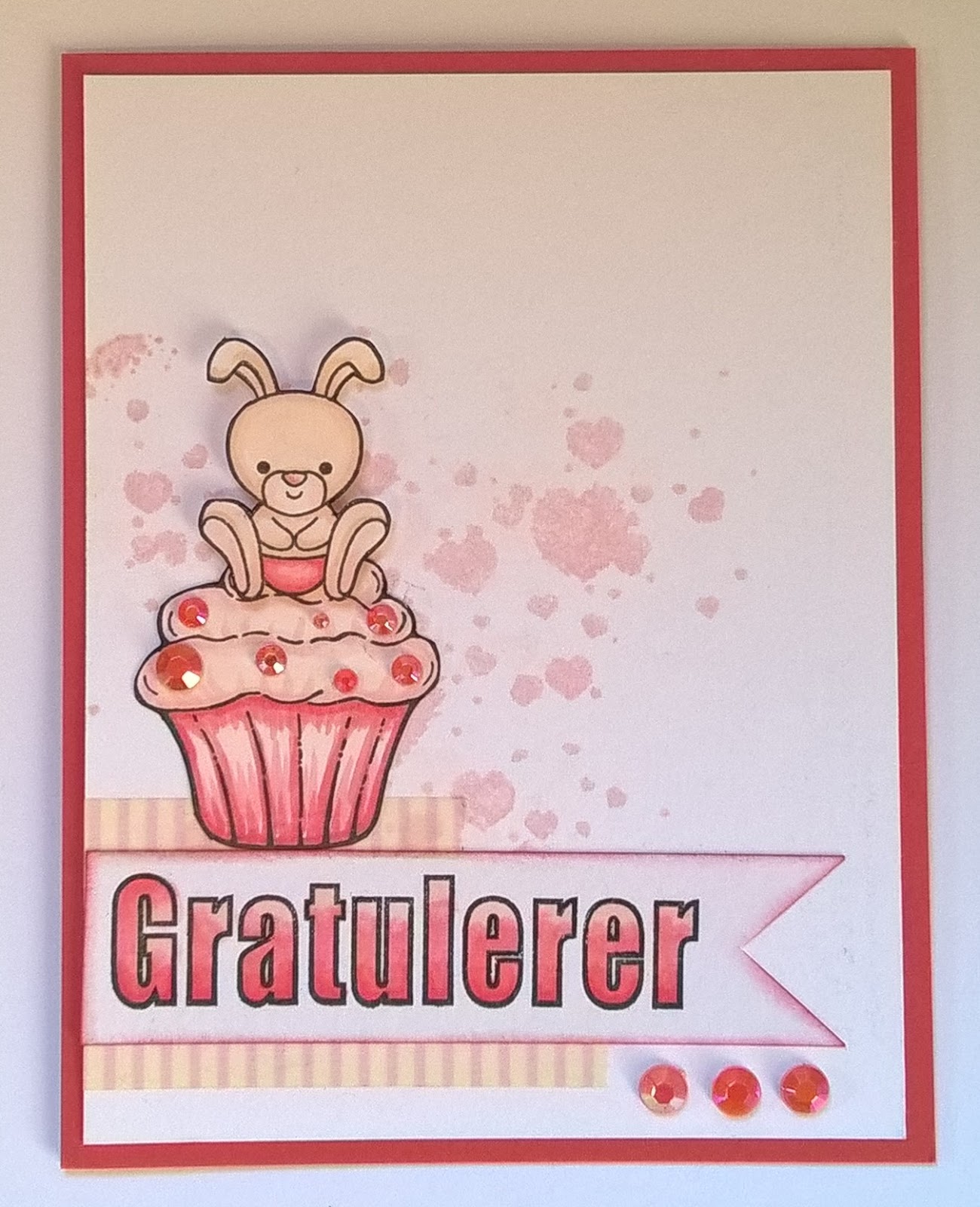 This card says Congratulations in norwegian :) I used the fun cupcake stamp from the  Cute Foodies Stampset from Your Next Stamp